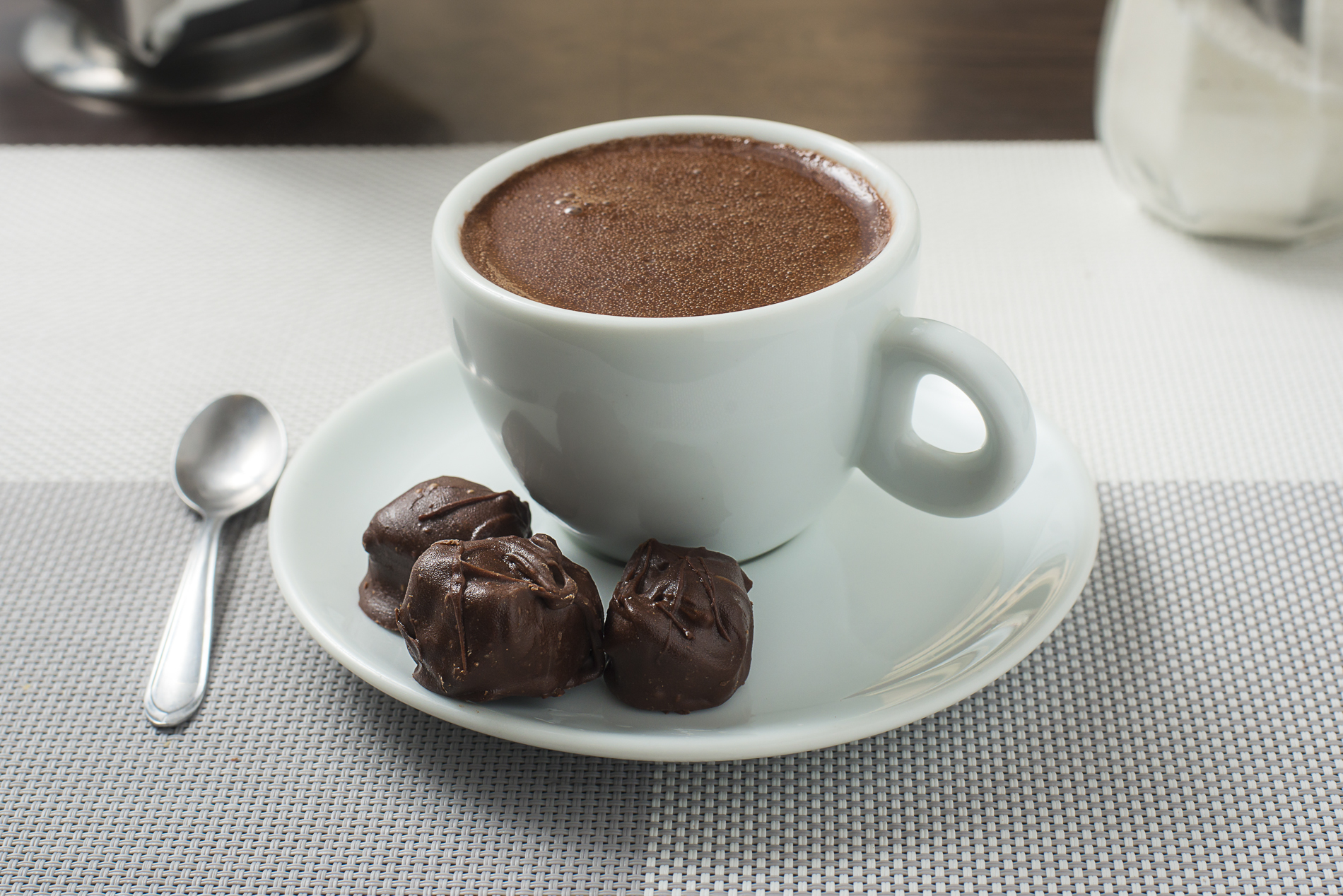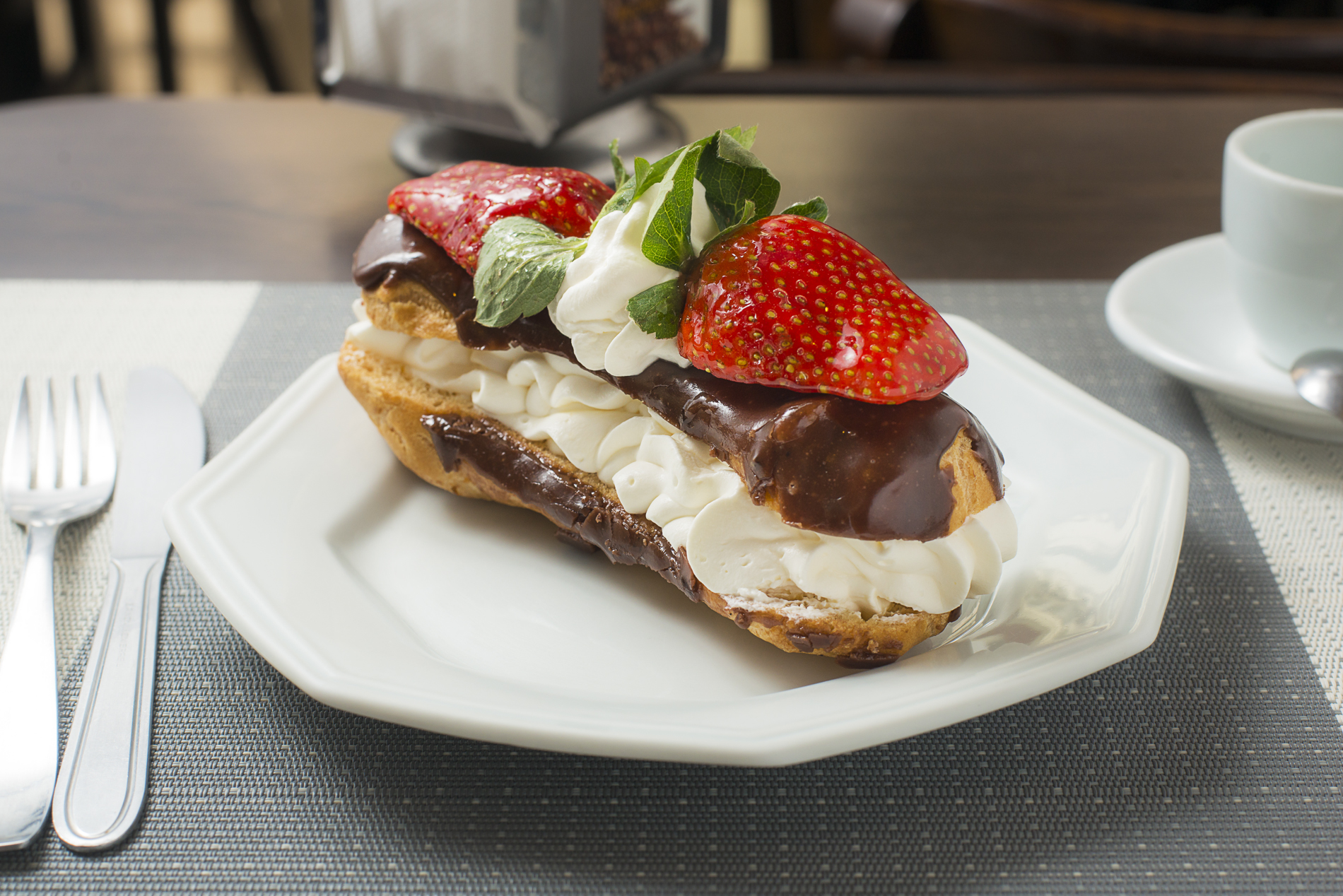 Bombas - chocolate, chocolate meio amargo, creme de baunilha ou chantilly com chocolate