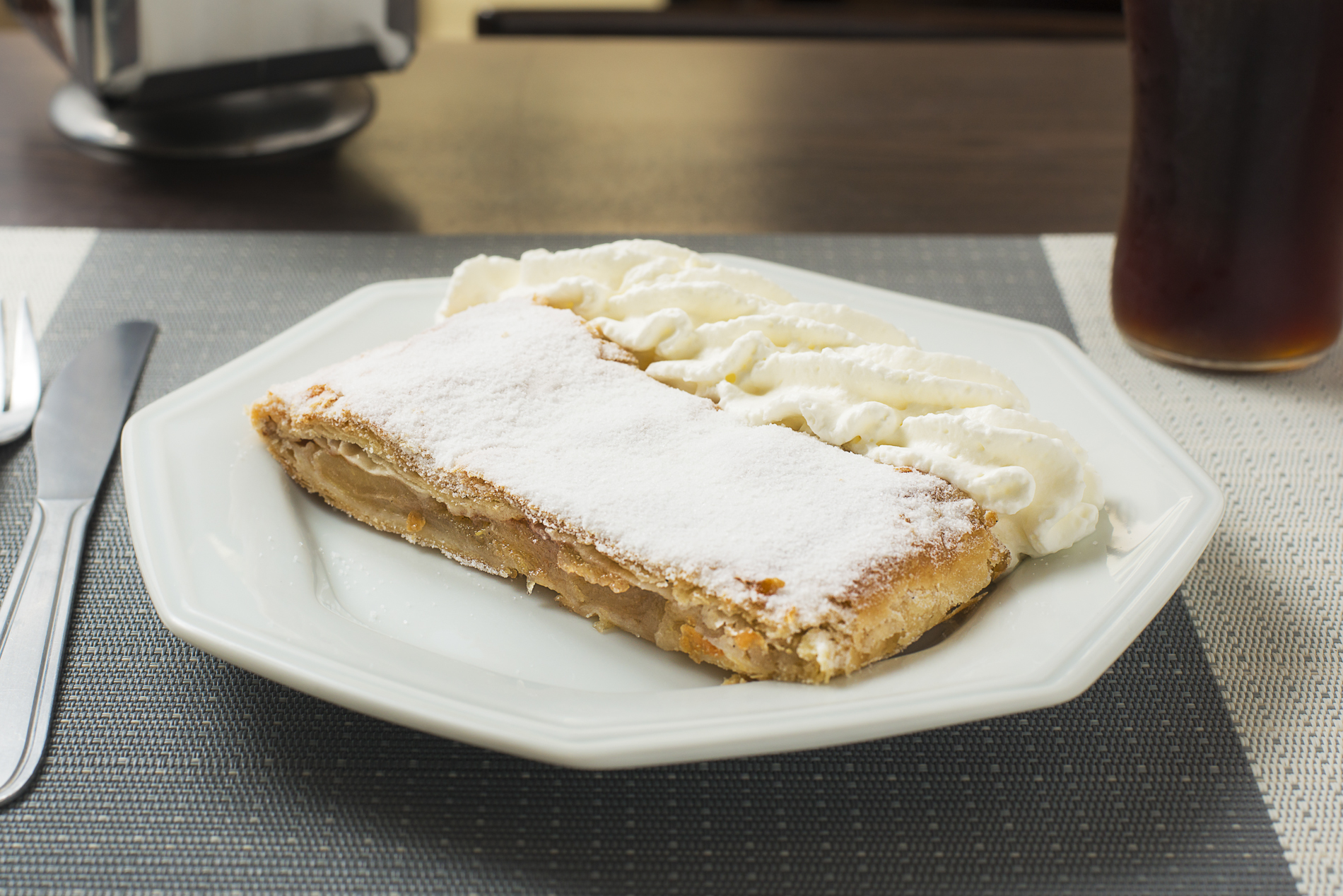 Strudels - maçã, canela e passas ( Almás Rétes). Maçã com nozes, damasco,ameixa, abacaxi ou banana & canela